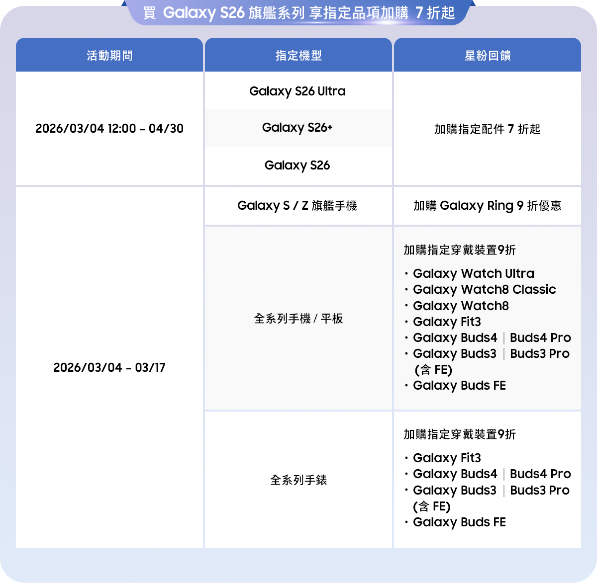 好康價適用Galaxy S26 旗艦系列加購指定配件新品享 7 折起